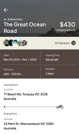 • Safety-first: Only admin-approved Riders can lead trips, with real-time online status checks. Members explore freely but join rides only after verification—ensuring every journey has trusted leaders and participants.